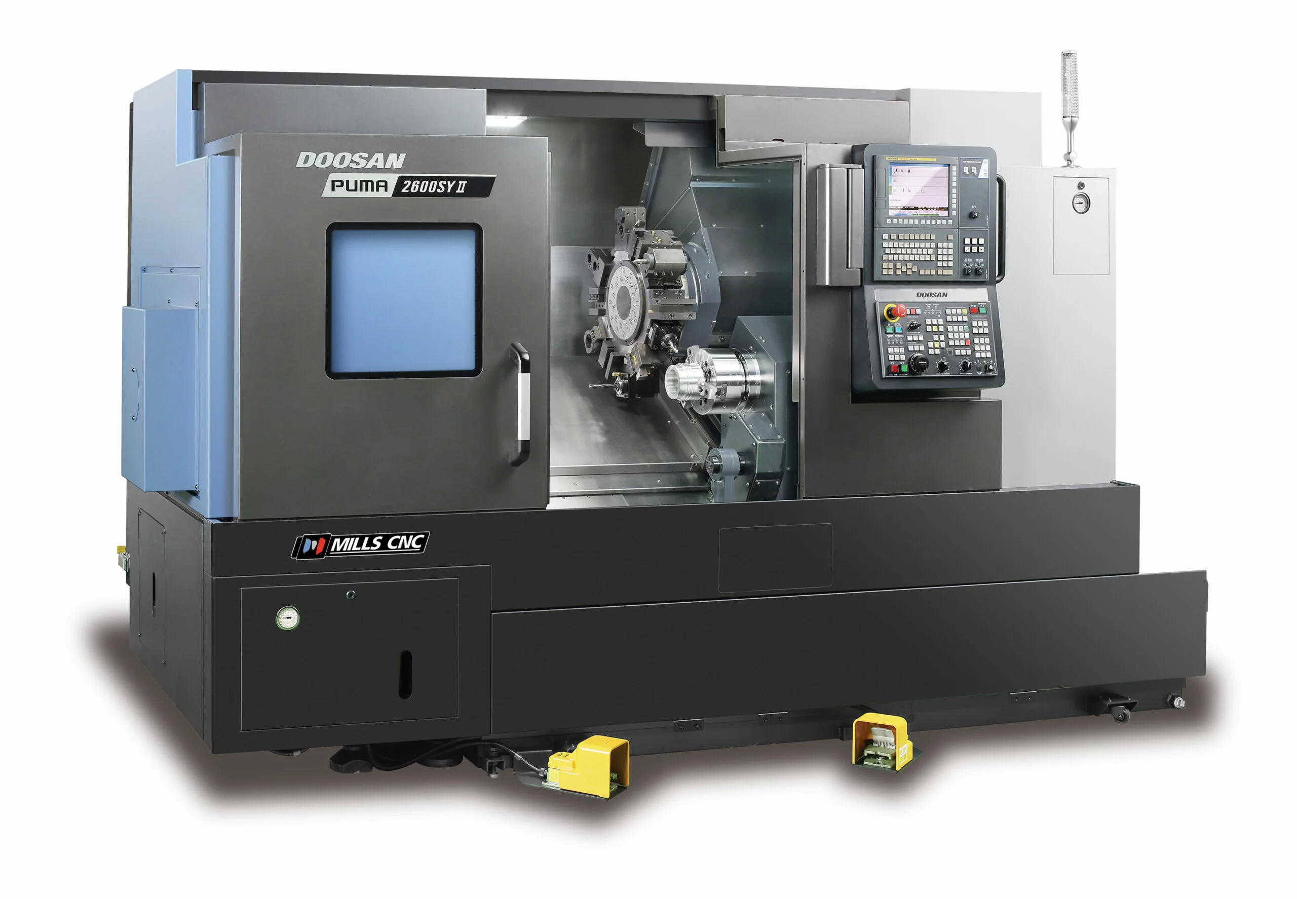 - The 10” chuck Puma 2600SY Mk II Y-axis sub-spindle lathe equipped with a built-in spindle and improved thermal displacement control for improved accuracies and part quality;